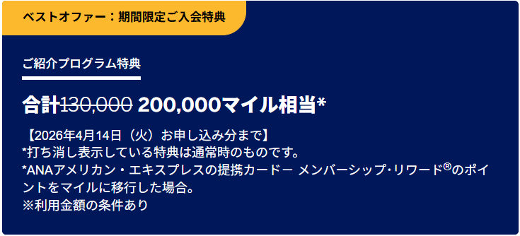 | 合計 | 120,000pt(120,000マイル)+10,000マイル(入会特典) |
