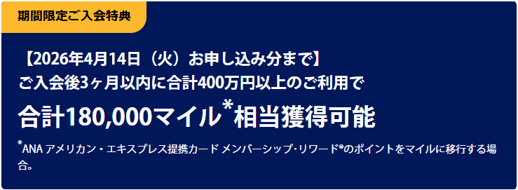 ANAアメックスプレミアムは現在、入会キャンペーンを実施しています。