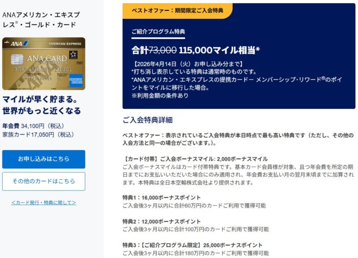 ANAアメックスゴールドは現在、入会キャンペーンを実施しています。