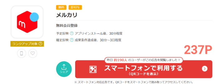 STEP2.メルカリの入会をポイントサイト経由でポイント獲得!