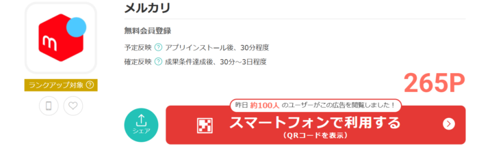 メルカリは現在、ポイントサイトへの掲載があります。