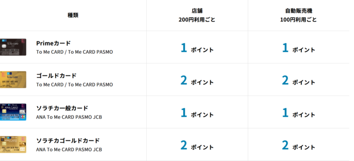 ソラチカカード(ANA To Me CARD PASMO JCB)の特徴