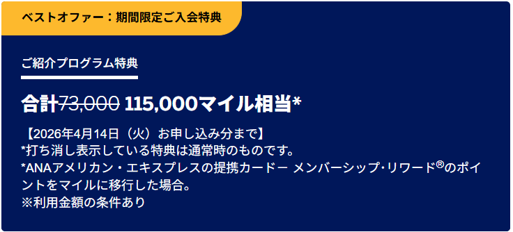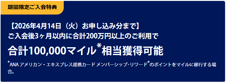 最後に、ANAアメックスゴールドの入会キャンペーンだけおさらいです。