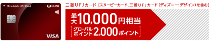 現在、三菱UFJカードの入会キャンペーンで最大10,000円相当のポイントを獲得することができます。