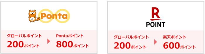 また、基本還元率が0.5%は、グローバルポイントを1ポイント=5円相当の特典に交換した場合なので1ポイントあたりの交換レートが3円や4円などの特典に交換すると還元率はさらに低くなるため注意が必要です。