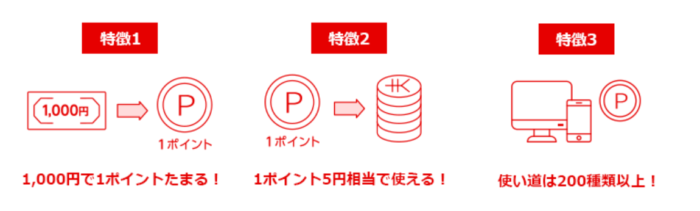 1ヵ月のショッピング利用金額合計1,000円ごとに1ポイント(1ポイント5円相当)が付与。