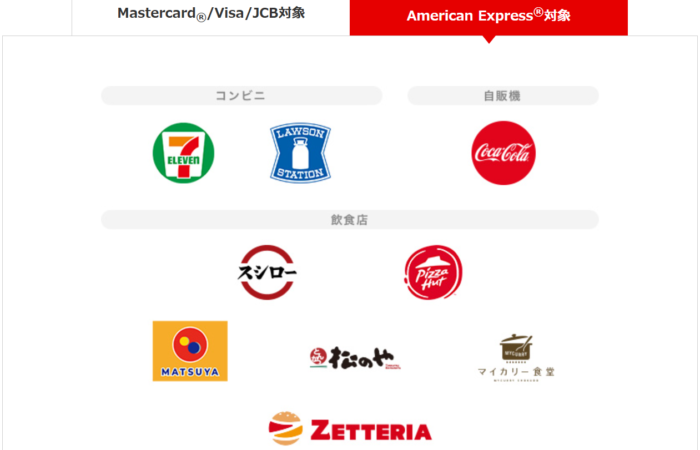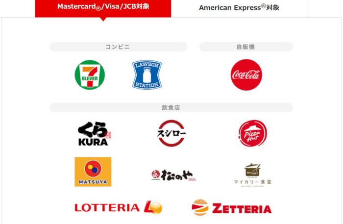 対象店舗は、カードの国際ブランドに応じて異なります。。
