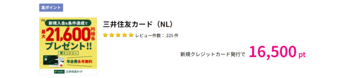 三井住友カード (NL)は現在、ポイントサイトの掲載がありますので、入会をするならポイントサイトを経由して入会した方が多くポイントを獲得できるのでお得になります。