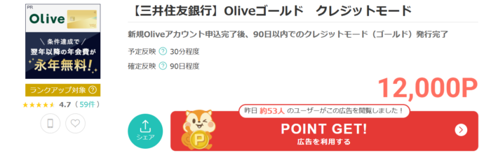 Oliveフレキシブルペイゴールドは現在、ポイントサイトへの掲載があります。