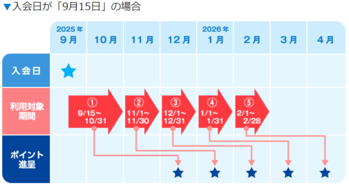 利用対象期間②入会日の2ヶ月後の1日~2ヶ月後の末日まで