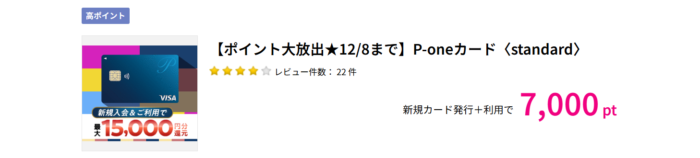 P-oneカードはポイントサイトで常時、キャンペーンをやっているので高額ポイントをゲットするチャンスがあります。