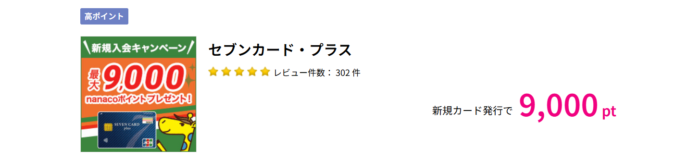 セブンカードプラスはポイントサイトで常時、キャンペーンをやっているので高額ポイントをゲットするチャンスがあります。