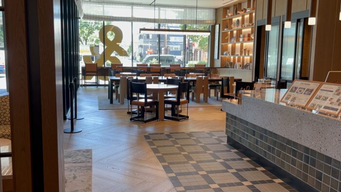 1階のエントランスは、ソファがあったり、カフェがあったり早速、楽しみが膨らみました。