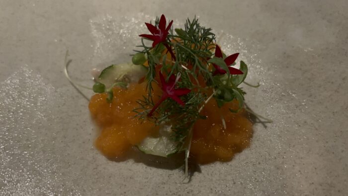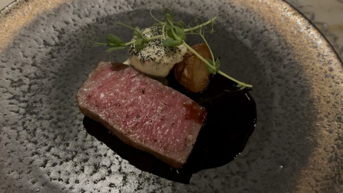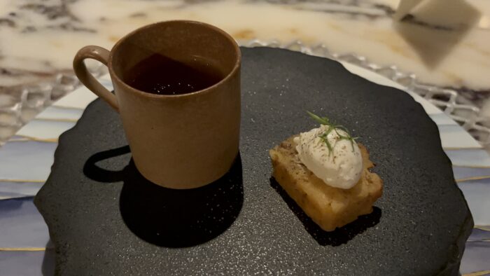 照明の関係もあり、うまく撮れませんでしたが、コース料理をいただきました。
