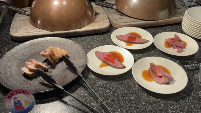 お寿司や目の前でカットしてくれるローストビーフなどもあり、満足感のある夕食でした。